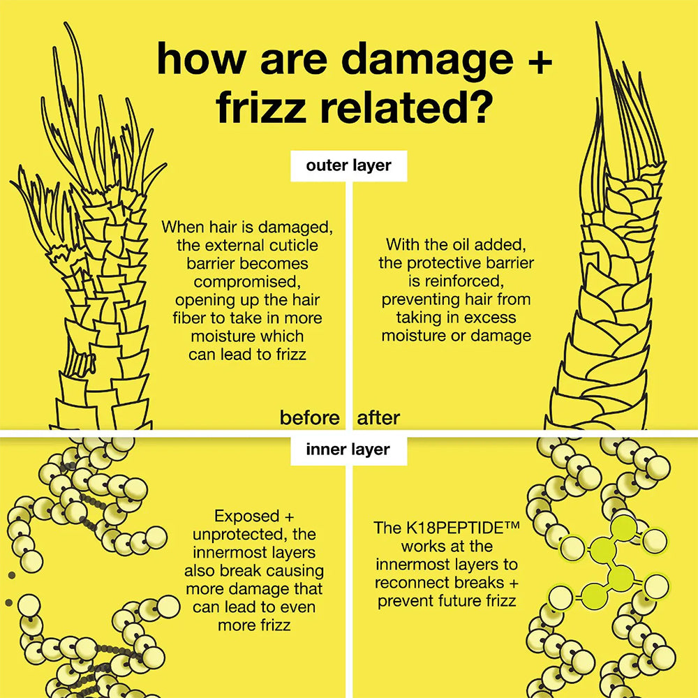 K18 Molecular Repair Hair Oil is a weightless yet powerful treatment that goes beyond surface-level care. This biotech-engineered oil penetrates deep into the hair fiber to repair damage, strengthen strands, and eliminate frizz from within - while instantly smoothing flyaways and boosting shine on the surface. Ideal for all hair types, it delivers 24-hour frizz control, 450°F heat protection, and visibly healthier hair with every use.