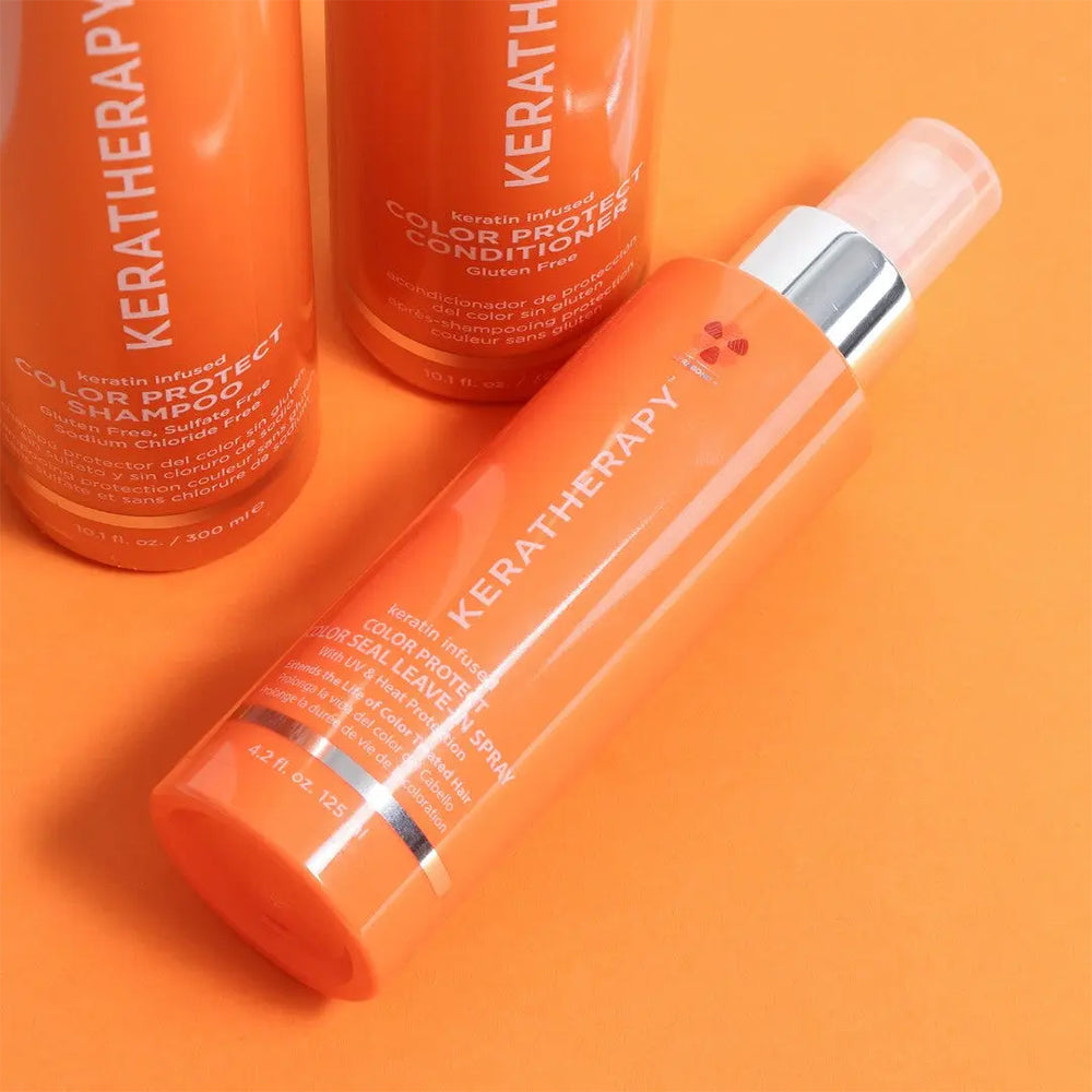 Protect your color and boost your shine with Keratherapy Keratin Infused Color Seal Leave-In Conditioner. This lightweight spray seals the cuticle to lock in color while delivering advanced UV and heat protection. Packed with keratin, argan oil, and antioxidants, it keeps your hair vibrant, smooth, and healthy - no matter how often you style.