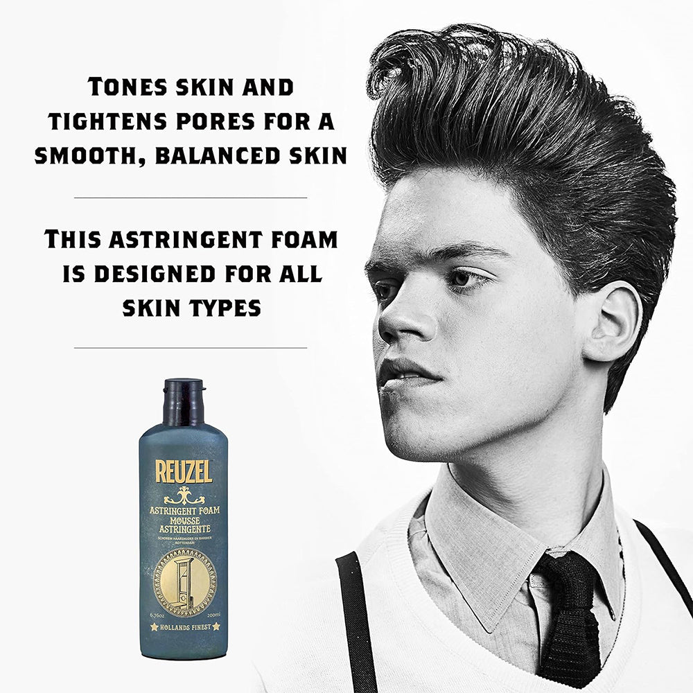 Struggling with oily skin, enlarged pores, or post-shave irritation? Reuzel Astringent Foam is your go-to solution for a clear, refreshed complexion. This fast-drying, oil-free formula tightens pores, soothes tender skin, and removes residual oil and grime - all without stripping away essential moisture. Perfect for use after a beard trim or head shave, this lightweight foam delivers precision application and a clean, balanced finish. Powered by Witch Hazel, it's a no-sting, no-shine fix for all skin types.