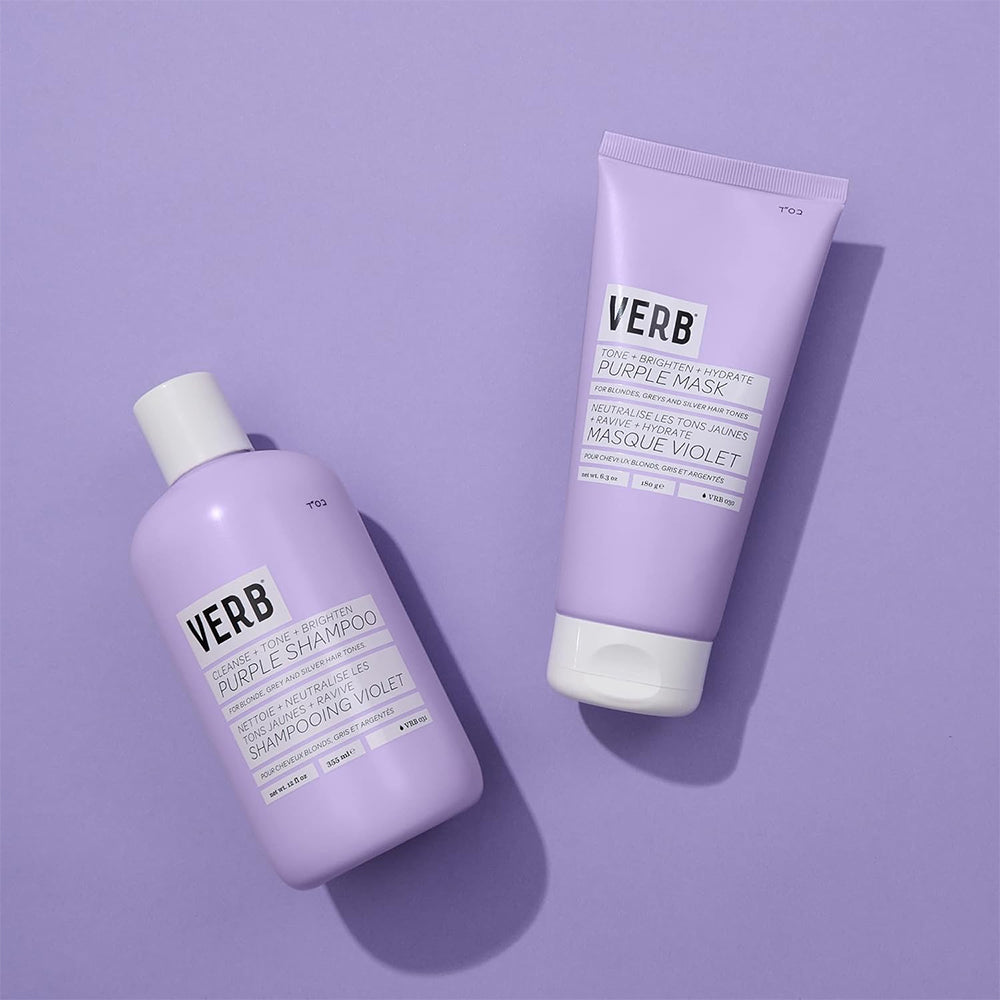 Brighten and tone your blonde, silver, or gray hair with VERB Purple Shampoo. This gentle, sulfate-free cleanser neutralizes brassiness and enhances cool tones while delivering lightweight hydration and shine. Hair feels clean, soft, and refreshed with a brighter, more vibrant finish. It completes the experience with a clean, fresh scent of citrus and soft floral notes.