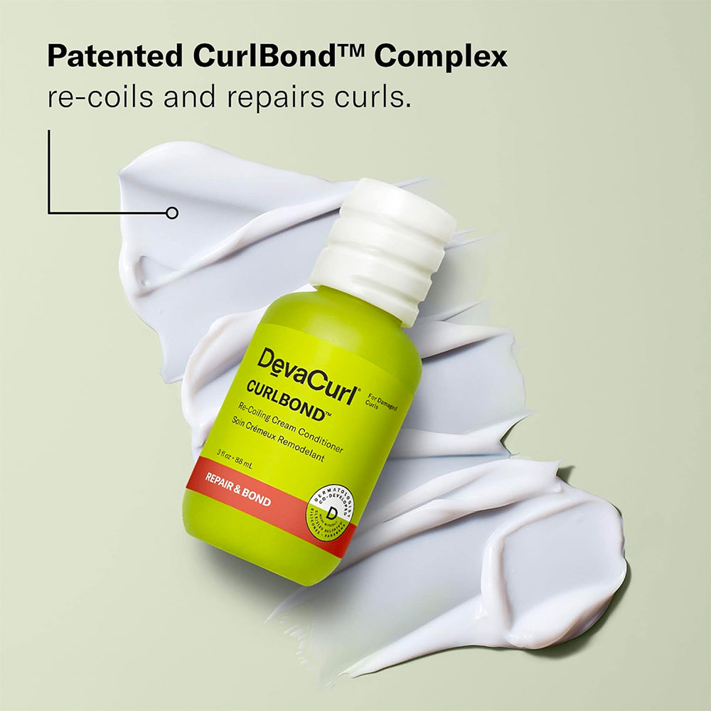 DevaCurl CurlBond Re-Coiling Cream Conditioner is a reparative conditioner powered by the patented CurlBond™ Complex. It helps repair broken bonds from the inside out, leaving curls stronger, shinier, and visibly healthier - with added moisture, frizz control, and definition.